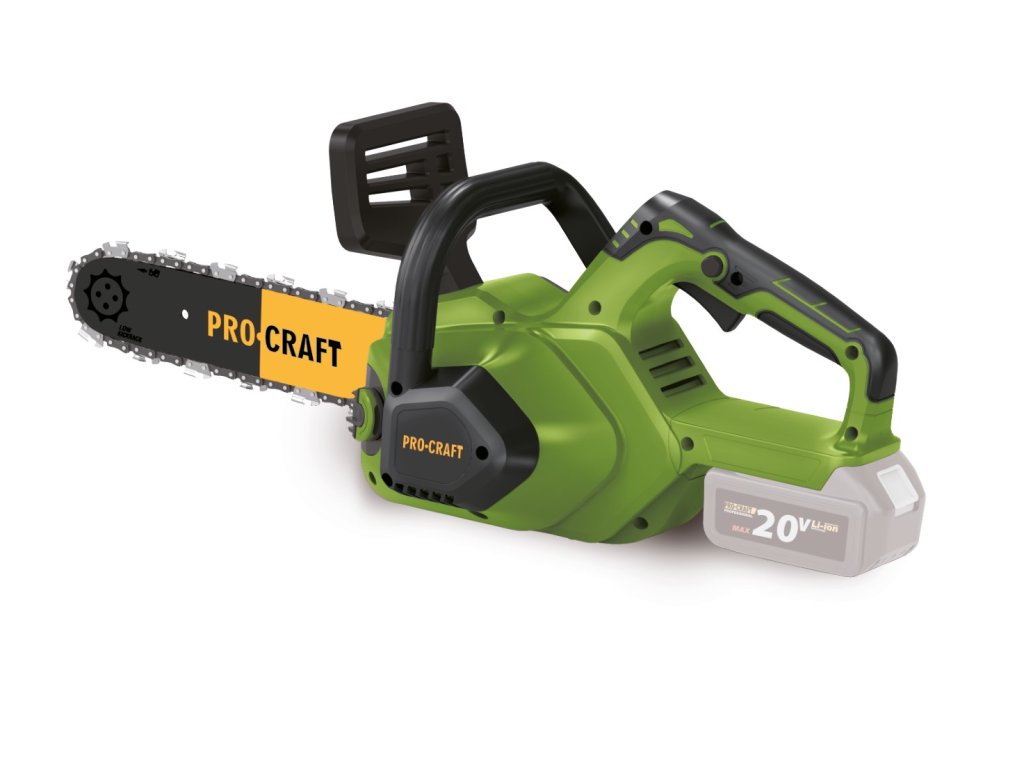 Doplňuje jej aku řetězová pila Procraft PKA38 s bezuhlíkovým motorem, kompaktními rozměry a nízkou hmotností, vhodná pro rychlé prořezávání stromů a keřů. Pila je dodávána s vodicí lištou, řetězem, krytem a montážním klíčem (bez baterie a nabíječky – využívá stejný akumulátor jako kolečko).
