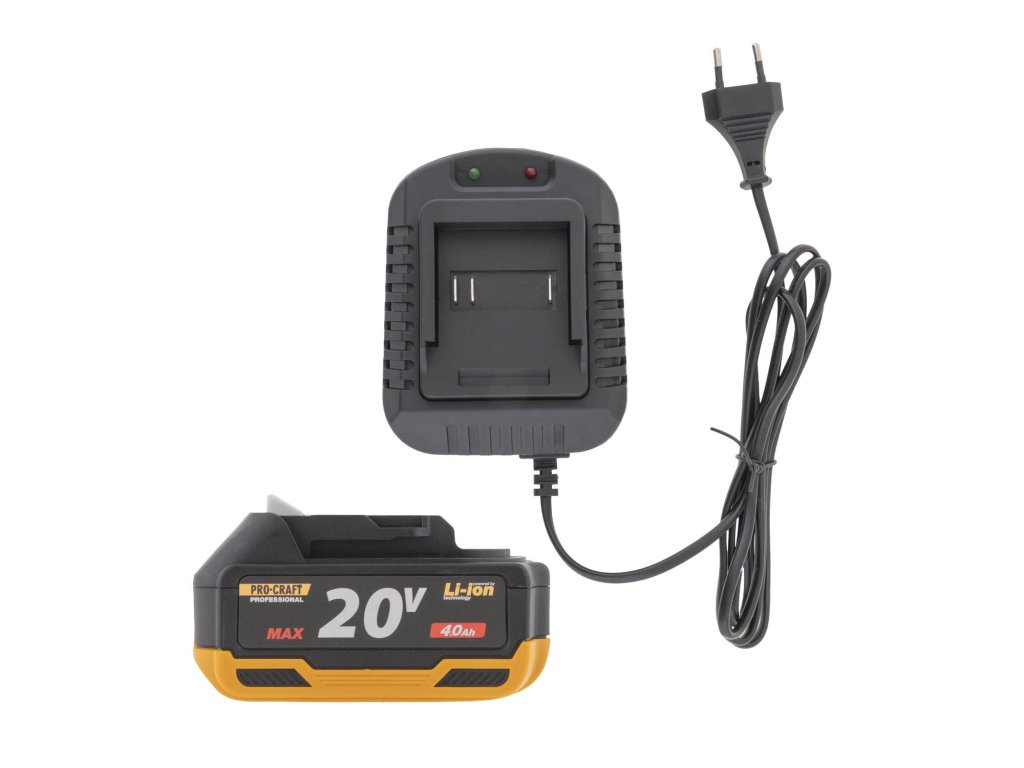 Součástí balení je Li-Ion baterie 20 V s kapacitou 4 Ah, která zajišťuje dlouhý pracovní čas, a nabíječka pro rychlé dobití. Vše je dodáváno v odolném plastovém kufru pro bezpečné uložení a snadný transport.