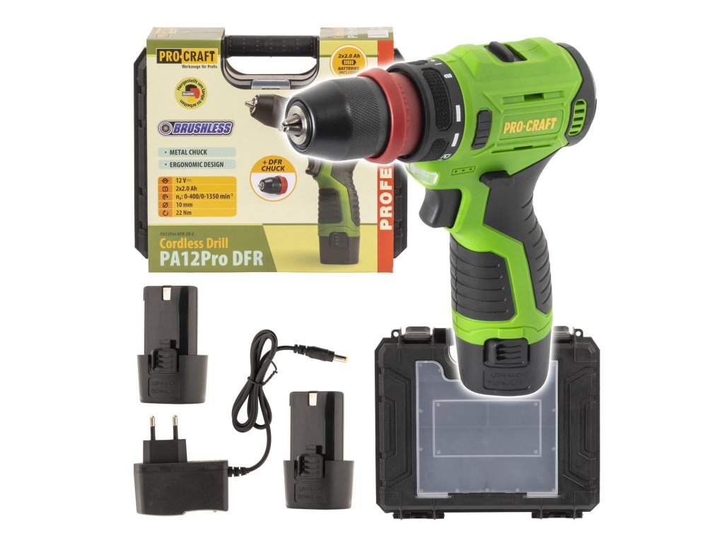 Aku šroubovák Procraft PA12Pro DFR | 12V, 2× baterie, bezuhlíkový motor