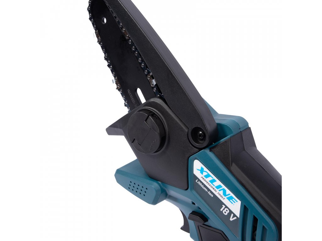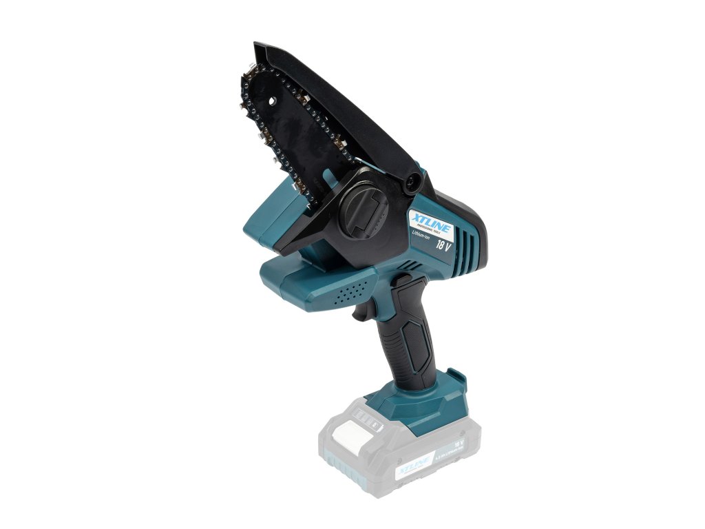 Aku řetězová mini pila 18 V je kompaktní a výkonný nástroj určený k prořezávání větví, keřů a dalších drobných dřevin. Díky své kompaktní velikosti je ideální pro práci v těžko přístupných místech, kde by větší nástroje byly nepraktické. S maximálním prořezem až 10 cm zvládne mini pila i středně silné větve a keře. Velkou výhodou tohoto modelu je ovládání pouze jednou rukou, což usnadňuje manipulaci a práci na nezvyklých místech. Ergonomicky pogumovaná rukojeť zajišťuje pohodlné uchopení a minimalizuje únavu při dlouhodobější práci.