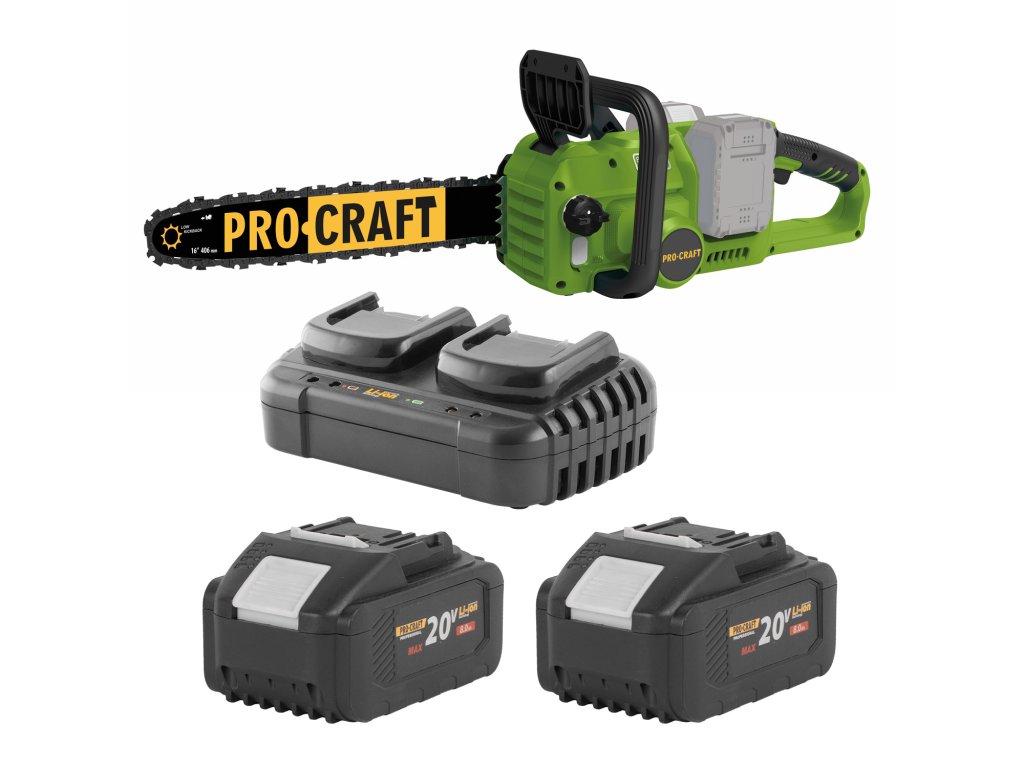 Sada aku řetězová pila Procraft PKA42/2 s bateriemi 2×20V 8Ah a nabíječkou 20/2 je kompletní řešení připravené k okamžitému použití. Díky napájení dvěma vysokokapacitními akumulátory nabízí dlouhou dobu provozu a dostatek výkonu pro náročnější řezání, zatímco bezkabelový provoz zajišťuje maximální mobilitu v terénu.