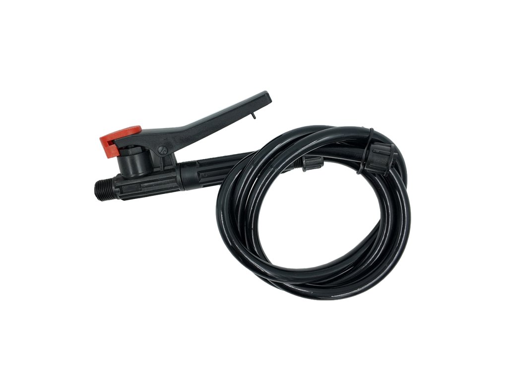 Postřikovač je vybaven kovovou teleskopickou tyčí o délce 47–84 cm a PVC hadicí 1,1 m, což zaručuje pohodlný dosah a manipulaci. Gumová těsnění odolávají lépe než běžné silikonové a přispívají k dlouhé životnosti zařízení.