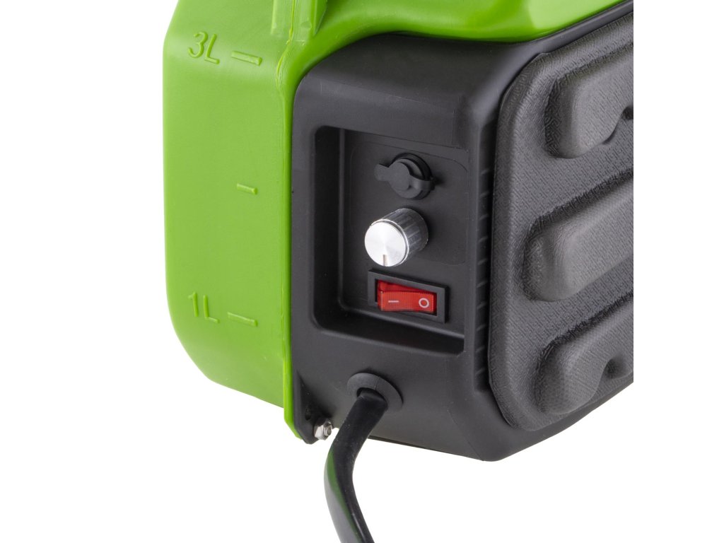 Postřikovač je vybaven teleskopickou tryskou s dosahem až 4 metry, takže pohodlně dosáhne i na vyšší nebo hůře přístupná místa. Průtok kapaliny 0,3–0,5 litru za minutu umožňuje přizpůsobení intenzity podle typu aplikace.