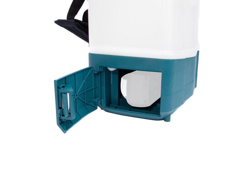 Tvarovaná nádrž a široké popruhy zaručují pohodlí při práci.