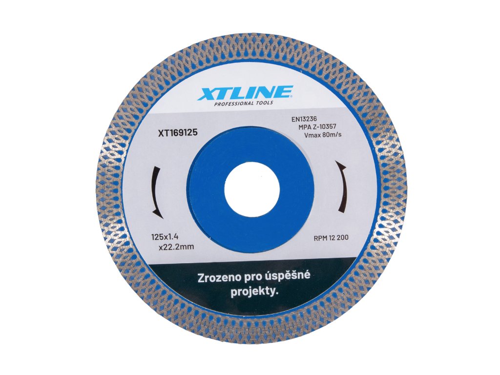 Nejtenčí plný diamantový kotouč na přesné a čisté řezání obkladů, tvrdé dlažby, slinuté dlažby. Extra tenký segment pro čistý řez s ostrou hranou bez otřepů je neocenitelným a profesionálním nástrojem pro obkladače, tvorbu mozaiky , řezání skla, břidlice a podobných křehkých materiálů. - diamantový řezný kotouč určený pro suché i mokré řezání betonu, zdiva, kamene, cihel, žuly, dlaždic, obkladů, mramoru, břidlice, křemene, skla, porcelánu, keramiky a střešních tašek.Doplňkové parametry