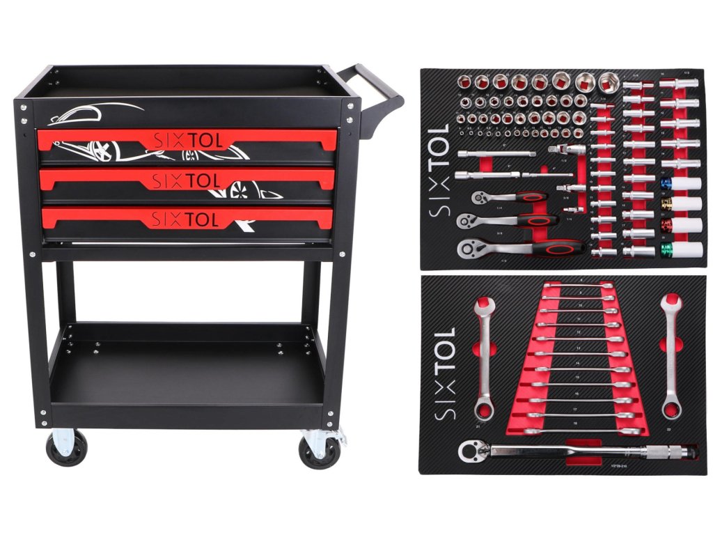 Dílenský vozík s nářadím MECHANIC TROLLEY JASON 94 – 3 šuplíky, 1 police, 94 ks nářadí