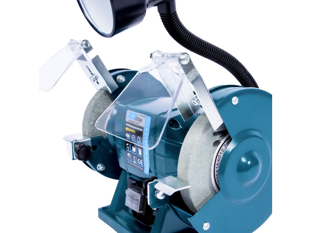 Bruska elektrická dvoukotoučová se svítidlem pro broušení a ostření. silný motor zaručuje plynulé broušení a vysoké otáčky kotouče. Dva brusné kotouče pro široké použití. Nastavitelné světlo, jemný a hrubý kotouč, pryžové podložky tlumící vibrace, vypínač chráněný před prachem