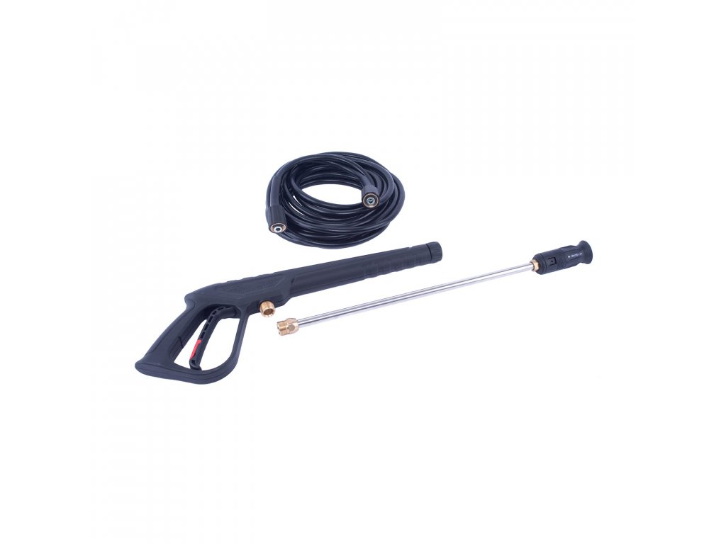 - Příslušenství: 5m napájecí kabel se zástrčkou, 8m vysokotlaká hadice, stříkací pistole s nastavitelnou tryskou