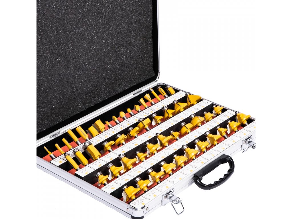 Sada tvarových fréz pro horní frézky - 50 dílů v hliníkovém kufříku přináší vše, co potřebujete pro precizní tvarování a úpravy dřeva. Kvalitní frézy s různými profily a ložisky jsou perfektní volbou pro profesionální i hobby použití. Každá fréza v sadě je optimalizována pro specifické typy řezů, včetně falcování, úhlových řezů, profilování a drážkování. Díky odolnému hliníkovému kufříku jsou všechny díly bezpečně uloženy a snadno přenosné, což usnadňuje práci na různých projektech.