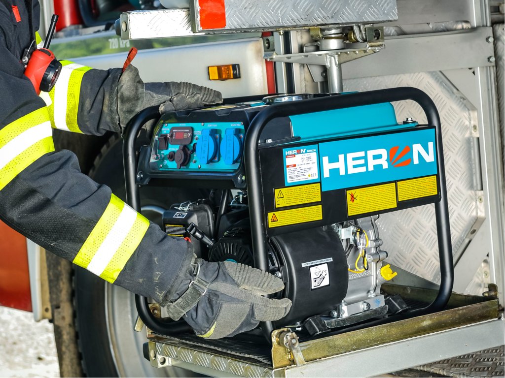 Elektrocentrála HERON je moderní zdroj elektrické energie určený všem, kteří potřebují spolehlivý, úsporný a přenosný výkon. Díky digitální invertorové technologii poskytuje čisté a stabilní napětí vhodné i pro citlivou elektroniku, přičemž zachovává nízkou hmotnost a kompaktní rozměry. Oproti běžným modelům s AVR regulací nabízí vyšší účinnost a efektivnější provoz, což z ní činí ideální zařízení pro stavebníky, servisní techniky i rekreační využití. Srdcem centrály je čtyřtaktní motor o výkonu 7,5HP, který umožňuje dlouhodobý elektrický výkon 4,0kW a krátkodobě až 4,3kW. Tento výkon postačí pro napájení většiny nářadí, čerpadel či topných spotřebičů. Dvojice zásuvek 230V/16A umožňuje současné použití více zařízení, zatímco 12V výstup s autozásuvkou poskytuje napájení drobných spotřebičů s odběrem do 8,3A – například USB nabíječek, chladicích boxů, vysavačů apod. Přiložené kabely zároveň umožňují nouzové nabíjení autobaterií. Digitální panel zobrazuje celkový i aktuální čas provozu, výstupní napětí a frekvenci. Velkou výhodou tohoto modelu je kompaktnost: invertorová technologie umožnila snížit hmotnost oproti běžným AVR centrálám téměř o 40% na 28kg a zároveň zmenšila objem o třetinu. Díky tomu se zařízení snadno přenáší a nevyžaduje velký prostor pro skladování. Robustní rám zajišťuje stabilitu a bezpečnou manipulaci i v náročném terénu. Elektronická regulace výkonu automaticky přizpůsobuje otáčky motoru aktuálnímu zatížení, čímž snižuje spotřebu. HERON tak představuje ideální volbu pro ty, kdo hledají tišší, lehčí a efektivnější elektrocentrálu s výkonem téměř 4kW v moderním přenosném provedení. Nabízí kombinaci vysokého výkonu, mobility a spolehlivosti při zachování příznivé ceny.- moderní a kompaktní řešení