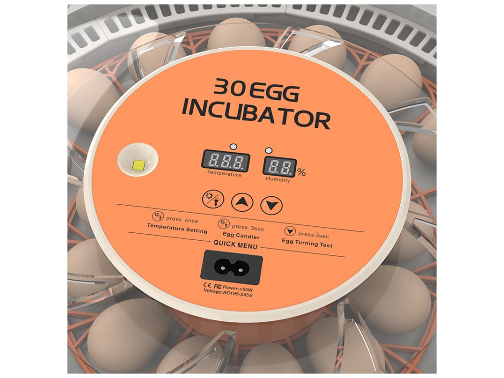 Automatické otáčení vajec zajišťuje rovnoměrný vývoj zárodků. V posledních dnech před líhnutím je možné otáčení vypnout a vejce ponechat v klidu na mřížce. Snadnou kontrolu vývoje embryí zajišťuje integrovaná LED lampa pro prosvěcování.