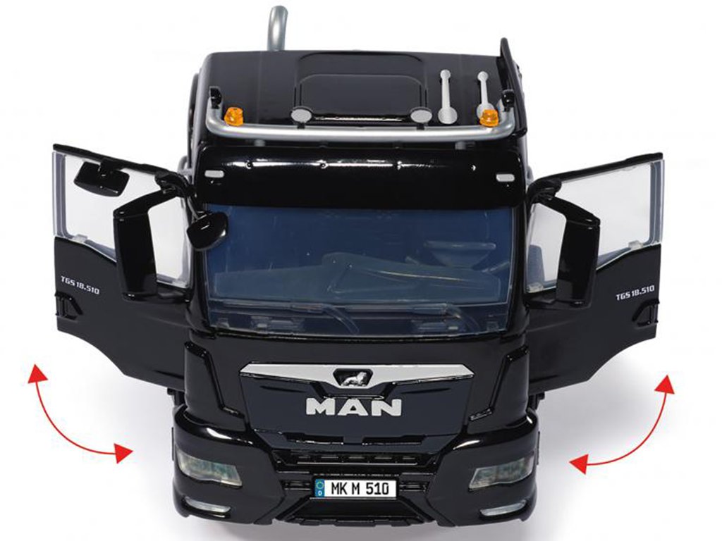 Počínaje barevným provedením, kabina zaujme na první pohled a stává se okamžitým centrem pozornosti. Tento zemědělský vůz MAN, známý pro svůj robustní výkon na poli i na silnici, je nyní zmenšený do dokonalé miniatury, která v sobě zachovává všechny klíčové rysy originálu.