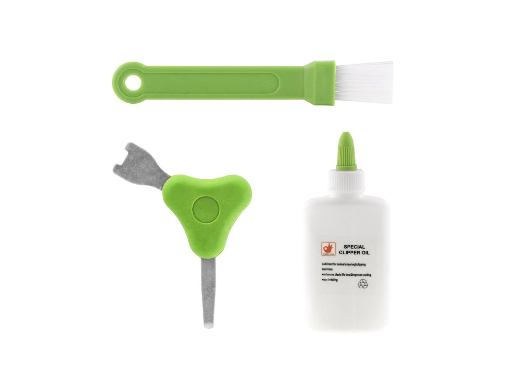 Střihací hlava, mazací příslušenství a nářadí pro údržbu