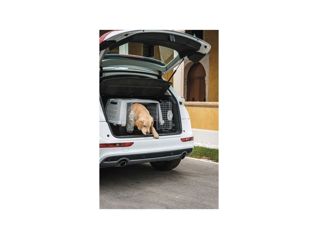 Pro možnost rozdělení přepravky pro dva psy doporučujeme ještě přikoupit dělící panel a cestovní misku pro druhého psa.