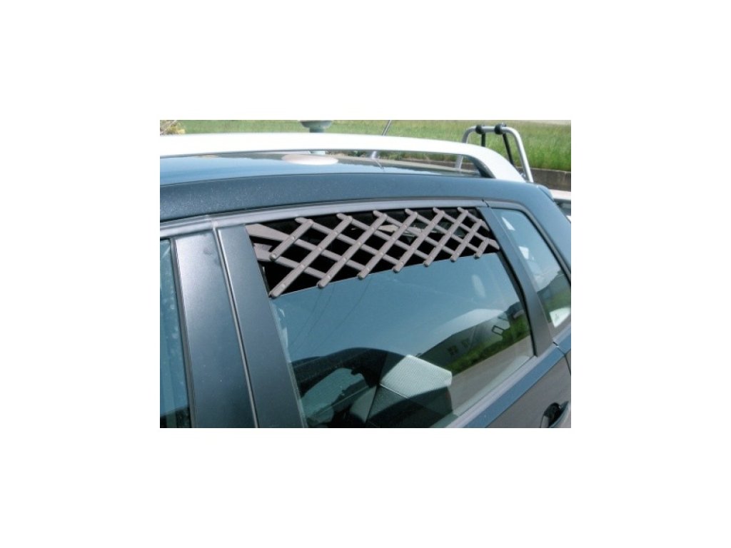 Plastová větrací mřížka do okna auta.nPoužívá se v případech, kdy je nutné zanechat zvíře ve vozidle a zajistit mu stálý přísun čerstvého vzduchu.