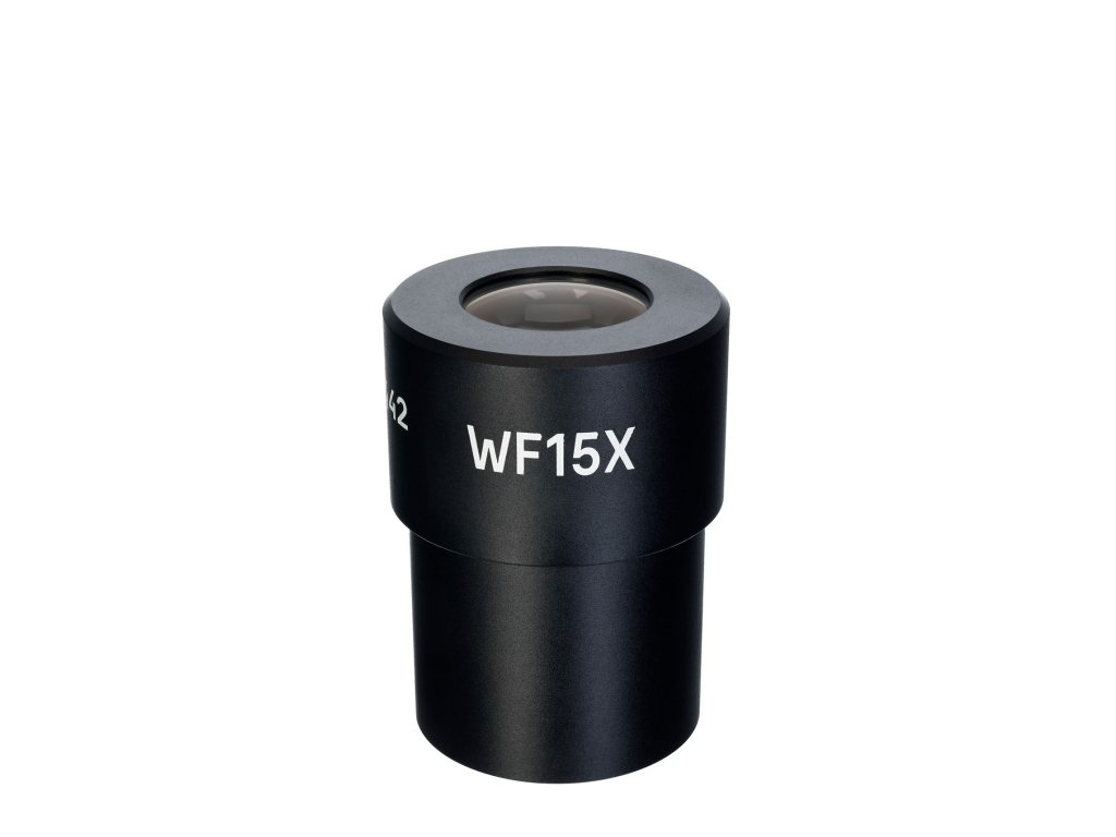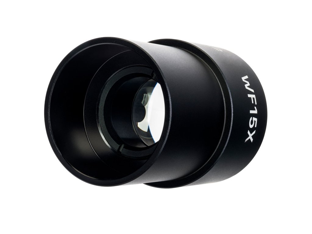 Okulár ovlivňuje zvětšení mikroskopu. Model SE15 má 15x zvětšení. Je namontován v tubusu o průměru 30 mm. Okulár nemá systém dioptrické korekce. U mikroskopu s kroužkem dioptrické korekce se nastavení dioptrií provádí přímo na mikroskopu.