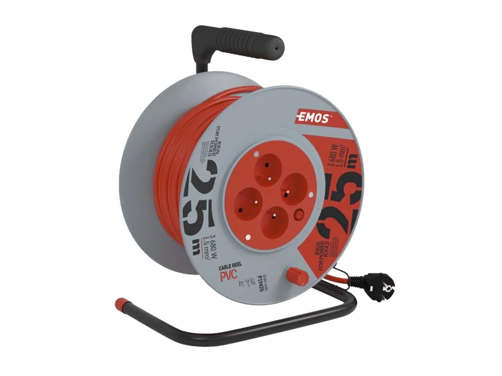 Prodlužovací kabel na bubnu 230V/25m je praktický a univerzální nástroj, který je ideální pro široké spektrum použití, ať už v domácnosti, na zahradě, nebo při technických a servisních pracích. Tento kabel s délkou 25 metrů a výkonem 230V je navržen tak, aby poskytl dostatečný dosah a flexibilitu při napájení různých zařízení, jako jsou zahradní technika, elektrické nářadí, nebo jiná zařízení vyžadující připojení na elektrickou síť. Bubnový design zajišťuje snadné navíjení a skladování kabelu, což výrazně zjednodušuje jeho použití a udržování pořádku.