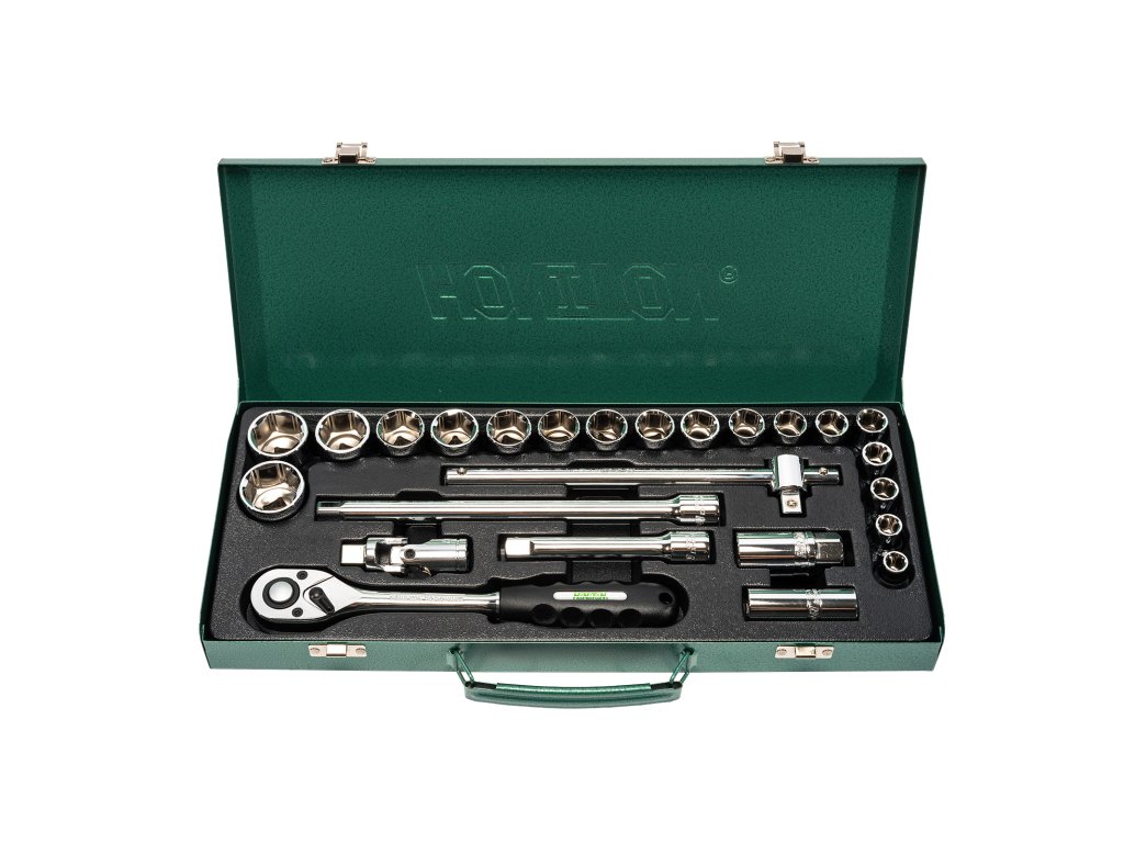1/2“ hlavice: 10,11,12,13, 14,15,16,17,18,19,20,21, 22,23,24,27,30,32 1/2“ ráčna 1/2“ vratidlo 1/2“ nástavec 125,250mm 1/2“ klíč na svíčky 16,21 1/2“ kardanDoplňkové parametry