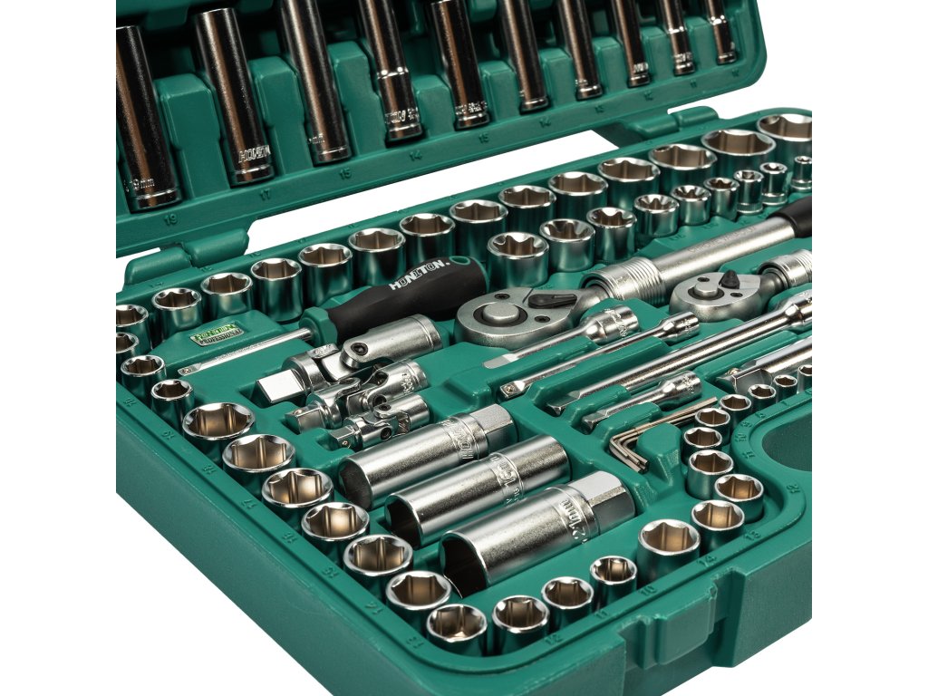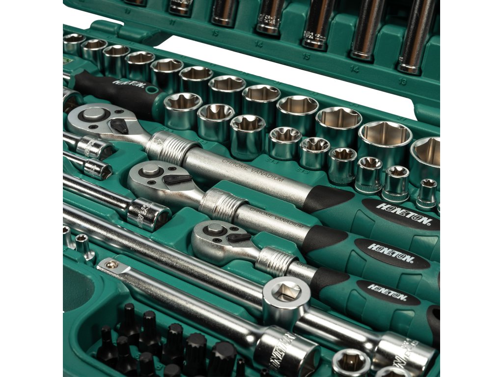 Sada hlavic 1/4"-3/8"-1/2" 155 dílů je kompletní a profesionální řešení pro autoservisy a dílny, které potřebují široký výběr nářadí v metrických rozměrech. Tato ucelená sada zahrnuje tři různé velikosti hlavic (1/4”, 3/8” a 1/2”) s bohatým příslušenstvím, jako jsou bity, imbusové a torxové hlavice, prodloužení, kardany, klíče na svíčky a teleskopické ráčny. Díky této sadě zvládnete různé opravy a montáže bez nutnosti hledání dalších nástrojů. Hlavice pokrývají velikosti od 4 mm až po 32 mm, což poskytuje flexibilitu pro širokou škálu úkolů. Navíc teleskopické ráčny usnadňují práci v hůře dostupných místech.