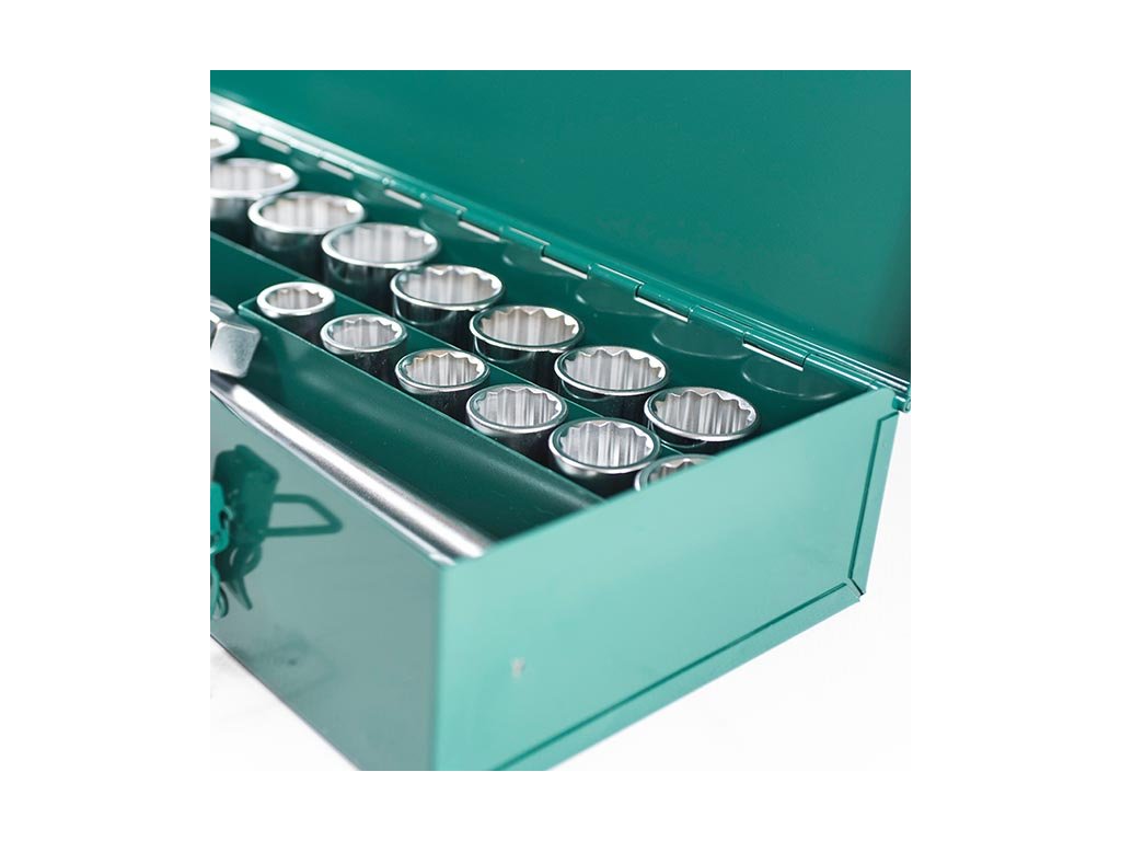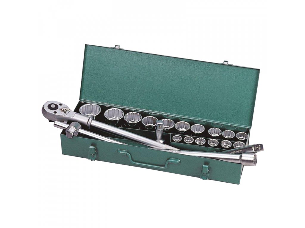 Sada hlavic 12ti-hran 3/4" – 21 dílů je ideálním řešením pro všechny profesionály i domácí kutily, kteří hledají kvalitní a odolné nářadí pro práci s různými rozměry šroubů a matic. Tato sada obsahuje 3/4" hlavice ve velikostech 19, 21, 22, 23, 24, 26, 27, 29, 30, 32, 35, 36, 38, 41, 45 a 50 mm, což pokrývá širokou škálu standardních i větších velikostí. Kromě hlavic je v sadě také 3/4" ráčna, vratidlo a nástavce o délkách 100, 200 a 400 mm, které zajišťují flexibilitu a snadnou práci i v těžko dostupných místech.