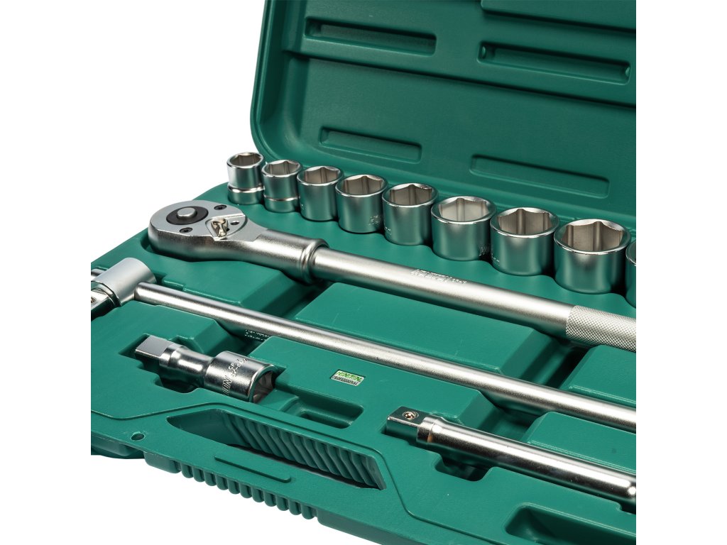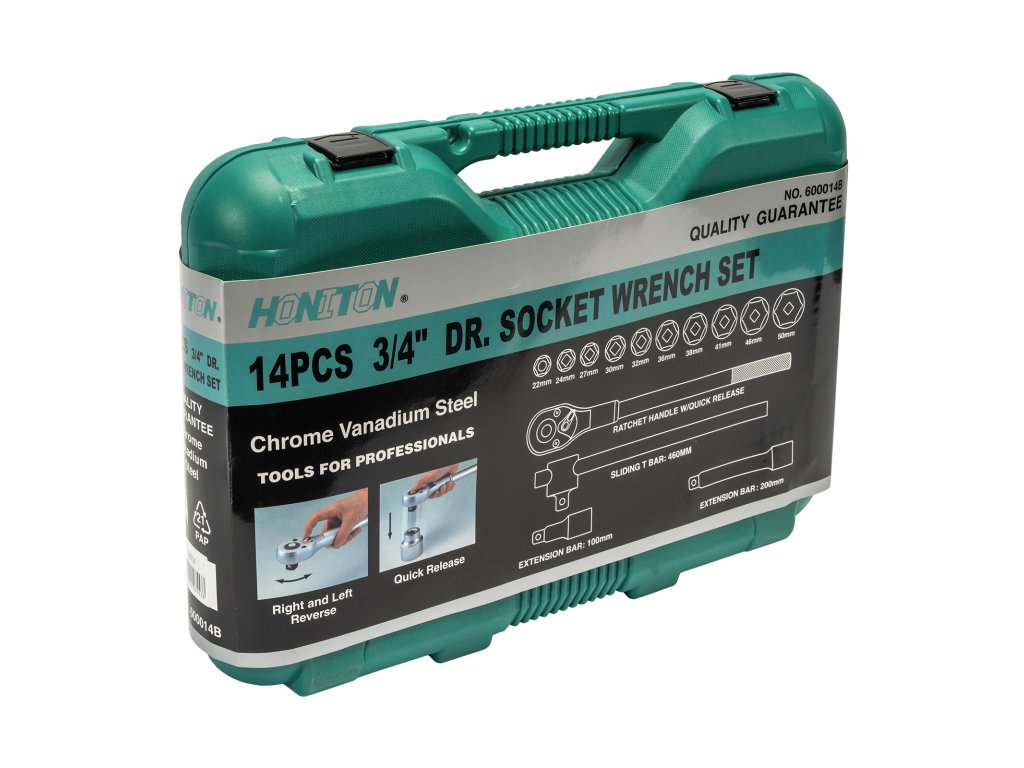 Sada hlavic 3/4" 14 dílů je skvělým pomocníkem pro náročné úkoly v dílně, na stavbě nebo v servisu. Tato robustní sada obsahuje širokou škálu 3/4" hlavic (22, 24, 30, 32, 36, 38, 41, 46 a 50 mm), které zajistí, že budete mít vždy po ruce tu správnou velikost pro různé matice a šrouby. Součástí je také 3/4" ráčna a 3/4" vratidlo, která umožňují flexibilní a snadné použití i v těsných nebo obtížně přístupných místech. Pro situace, kdy potřebujete dosáhnout hlouběji, je sada vybavena nástavci o délkách 100 mm a 200 mm.