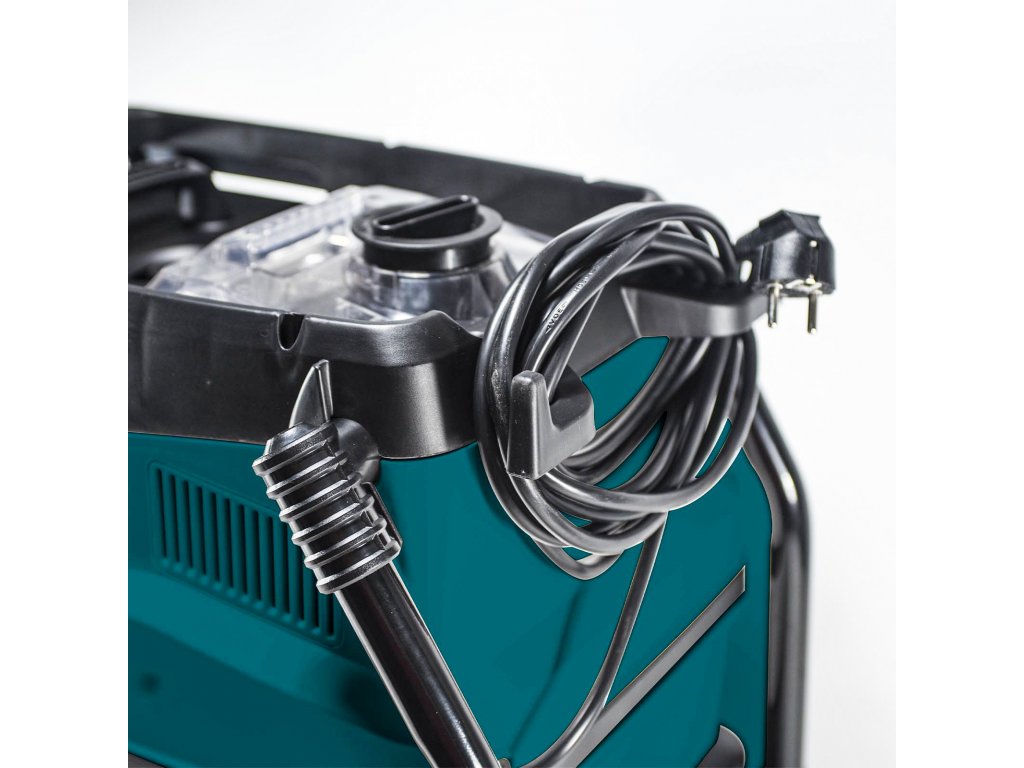Vstup pro suché vysávání umožňuje efektivní úklid prachu a nečistot v sáčku, což je ideální pro stavby či renovace. Mokré vysávání si poradí s vodou, odstraňováním rozlitých kapalin nebo při čištění koberců. Ergonomická rukojeť zajišťuje snadné přenášení vysavače.