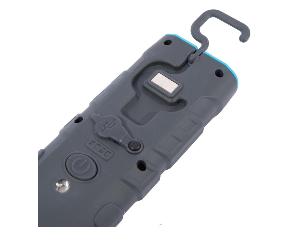 Robustní montážní nabíjecí svítilna s magnety, háčkem a kloubem. Pogumovaný povrch zajišťuje pohodlnou manipulaci. Hlavní světlo doplňuje praktická horní LED dioda pro přímý svit. Nabíjecí port USB-C. USB kabel je součástí balení. Doporučená nabíječka: 5 V/2 ADoplňkové parametry