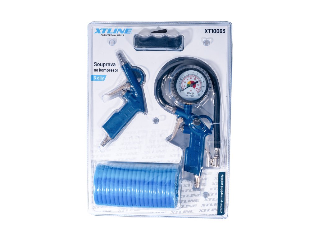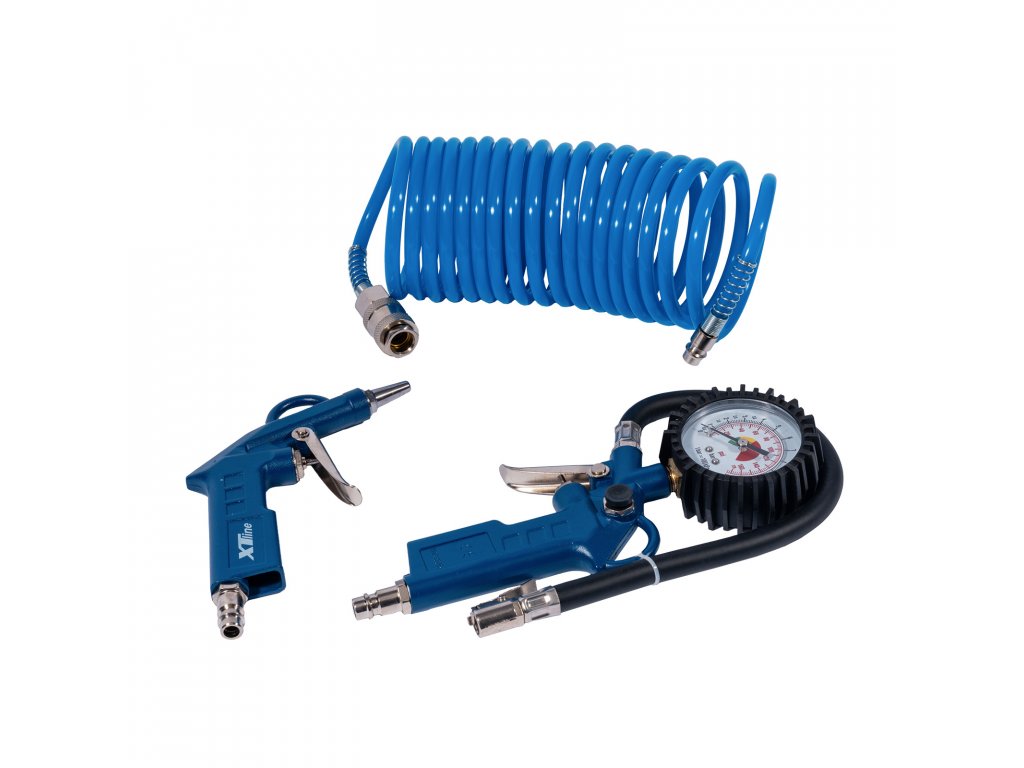 Základní sada pro kokmpresor k nafukování pneumatik a čistění pomocí ofukovací pistole. Provozní tlak 12bar pistole na huštění s manometrem, pistole ofukovací, hadice 5mDoplňkové parametry