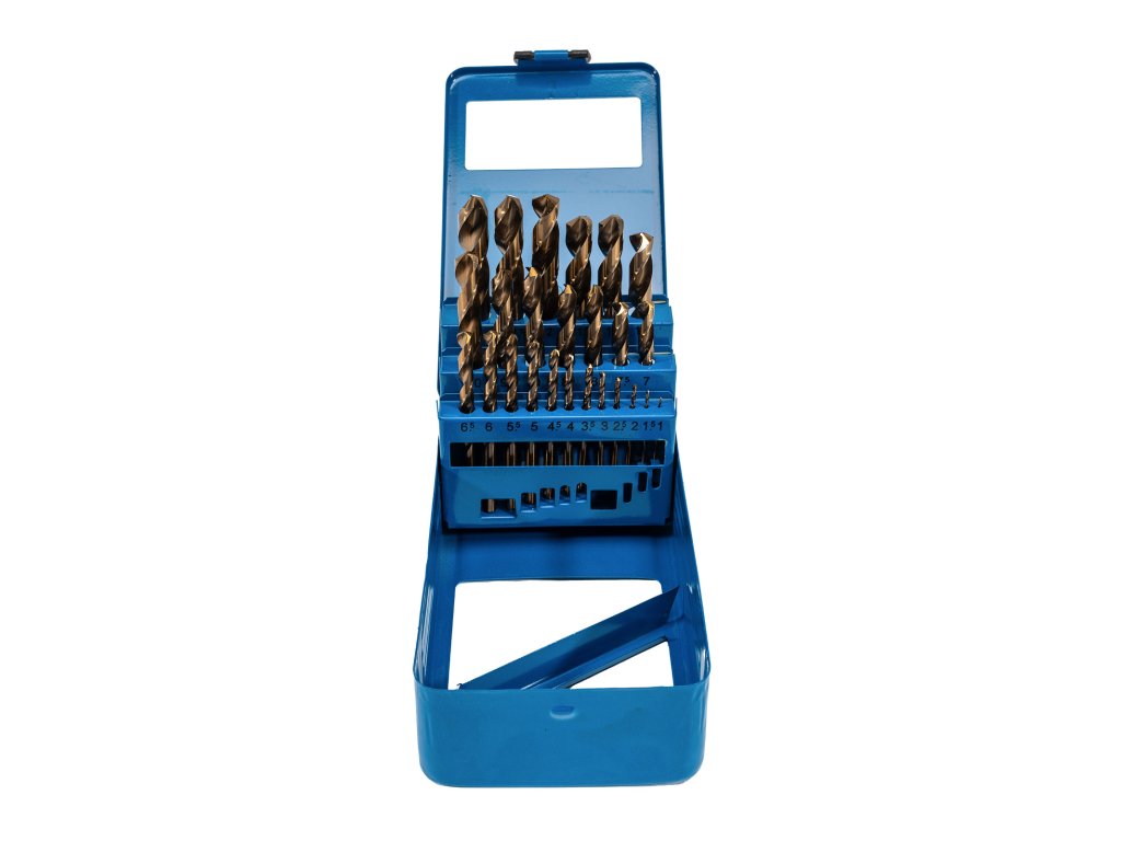 Sada vrtáků 1-13mm, 25 dílů, cobalt je ideální pro náročné práce s kovovými materiály. Tato sada obsahuje 15 vrtáků vyrobených z kvalitní rychlořezné oceli HSS s příměsí 5% kobaltu, což výrazně zvyšuje tvrdost vrtáků a prodlužuje jejich životnost. Dělená špička broušená pod úhlem 135° zajišťuje precizní vystředění a umožňuje menší tlak při vrtání, což výrazně usnadňuje práci. Vrtáky jsou ideální pro vrtání oceli, nerezové oceli, litiny a jiných kovů. Dále se vyznačují válcovou stopkou a jsou baleny v praktické plastové kazetě s pogumovanými rohy pro bezpečné a pohodlné uskladnění. Špička SPLIT-POINT 135° zaručuje perfektní vystředění a rychlé odbírání materiálu díky vybroušené šroubovici.