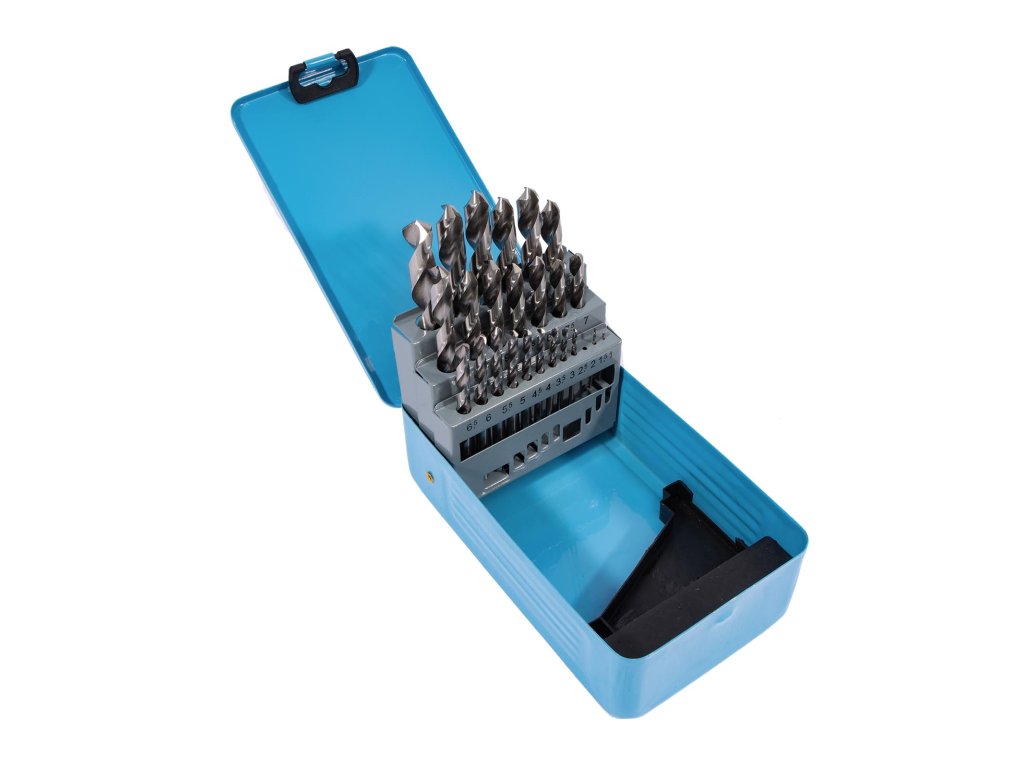 XTLINE Sada vybrušovaných vrtáků do kovu HSS-G, 25 dílů | 1-13 mm, kovový box
