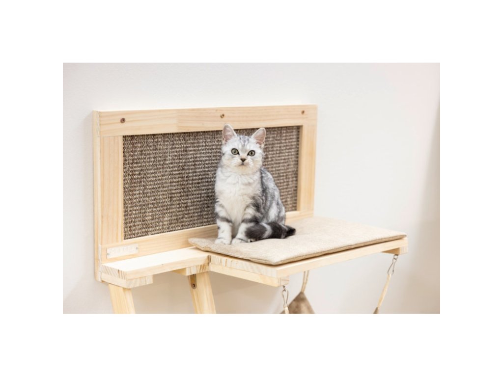 - ideální pro malé prostory: montáž na stěnu šetří místo a zároveň dopřeje kočkám prostor ve výšce
