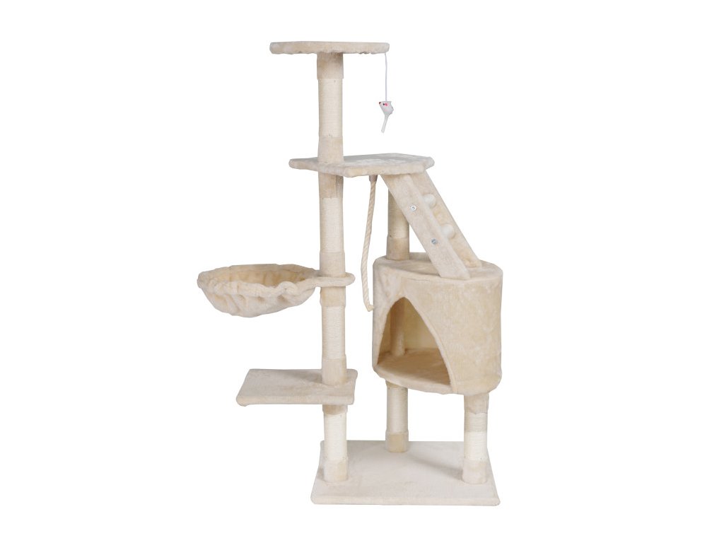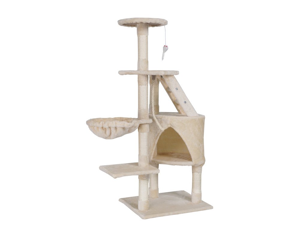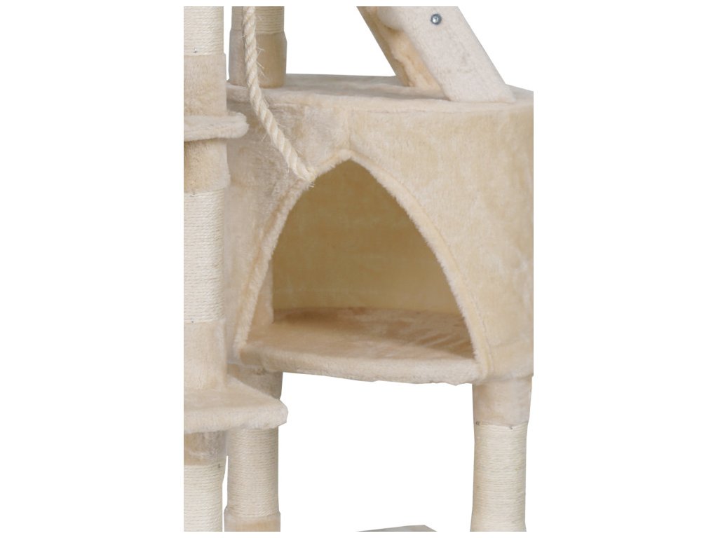Škrábe vám Váš chlupatý mazlíček sedačku a šplhá po záclonách? S naším vymazleným škrabadlem už nebude! Dopřejte své kočičce luxusní útočiště. Toto víceúrovňové škrabadlo je dokonalou kombinací komfortu, bezpečí a zábavy, díky čemuž splní všechny potřeby vaší kočičky. Nabízí útulný domeček, tři vyvýšené plošiny, myšku a lano na hraní, houpací síť a sisalové škrábací sloupky. Moderní design v béžovém provedení skvěle doplní váš interiér.