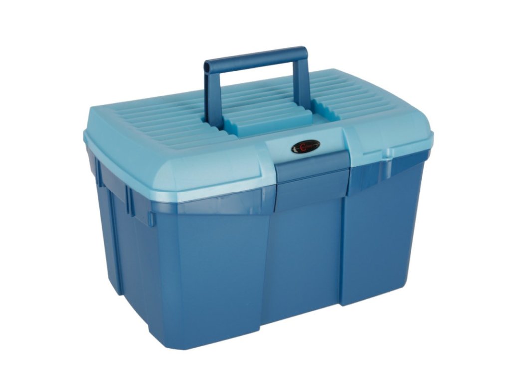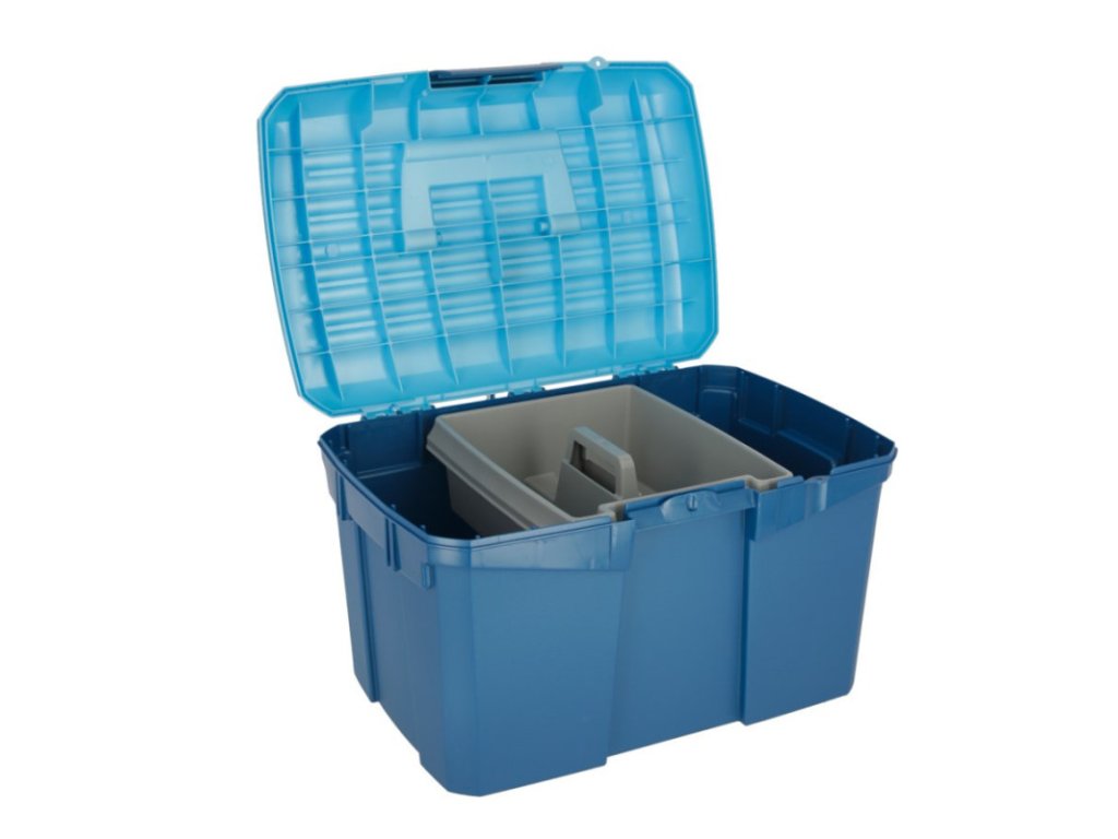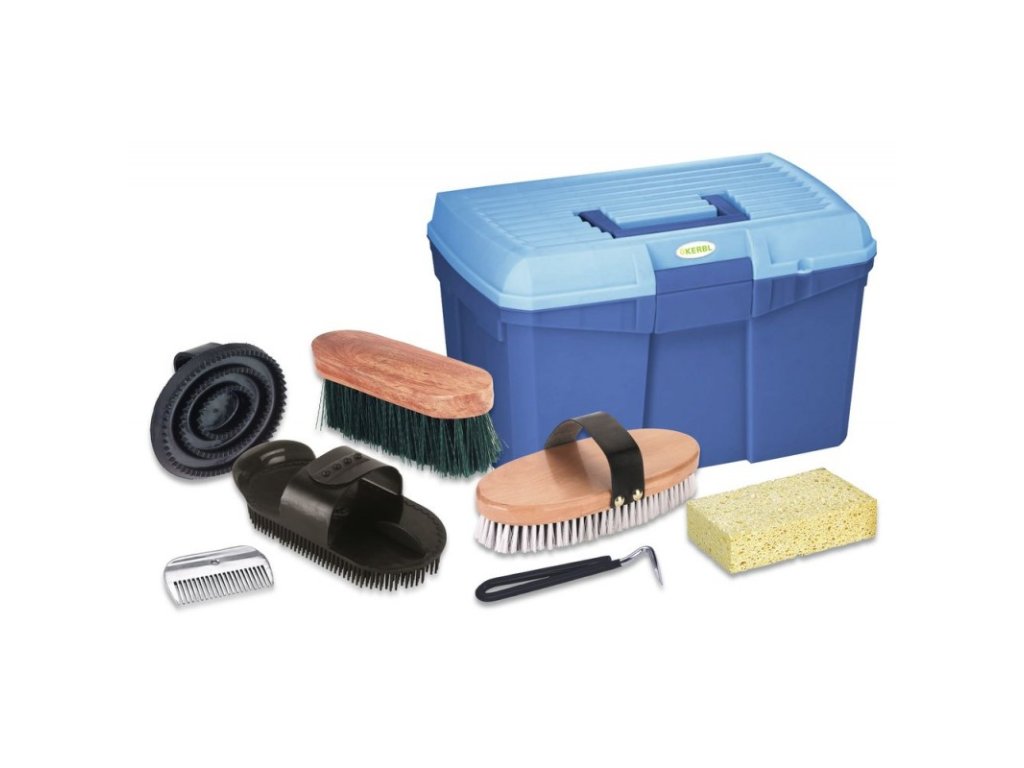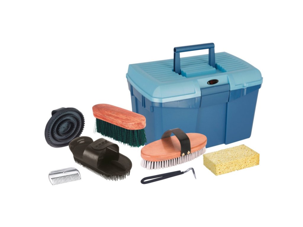 Sedmi dílná sada čištění na koně v plastovém uzavíratelném kufříku.Kompaktní prostorný box s madlem a vyjímatelnou přihrádkou pro přehledné uložení pomůcek pro péči o koně. Ideální do stáje i na cesty