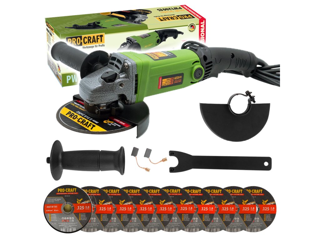 Bruska úhlová Procraft PW1200ES + 10x řezný kotouč CD125x1.0b v kovovém boxu
