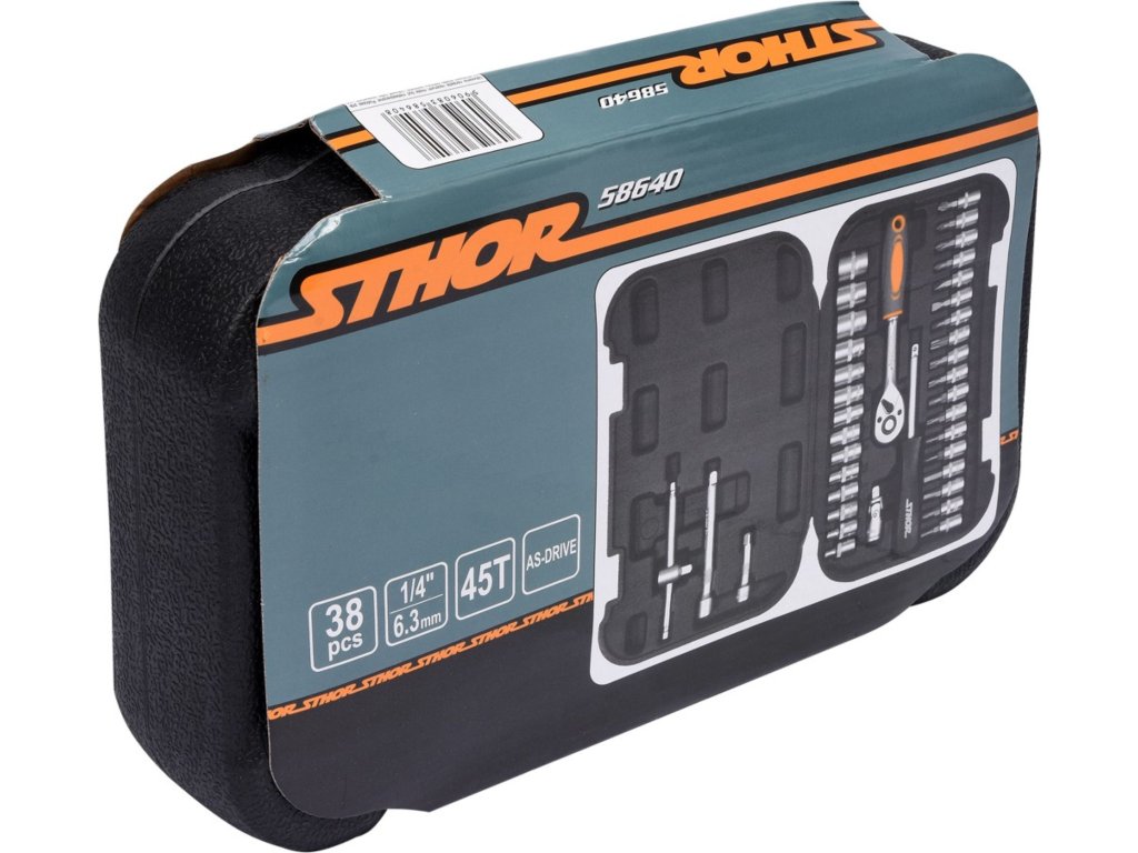 Gola sada 1/4" obsahuje 38ks: nástavce a ráčnu s plastovou rukojetí. Vyrobené z kvalitní oceli s funkcí AS-DRIVE.