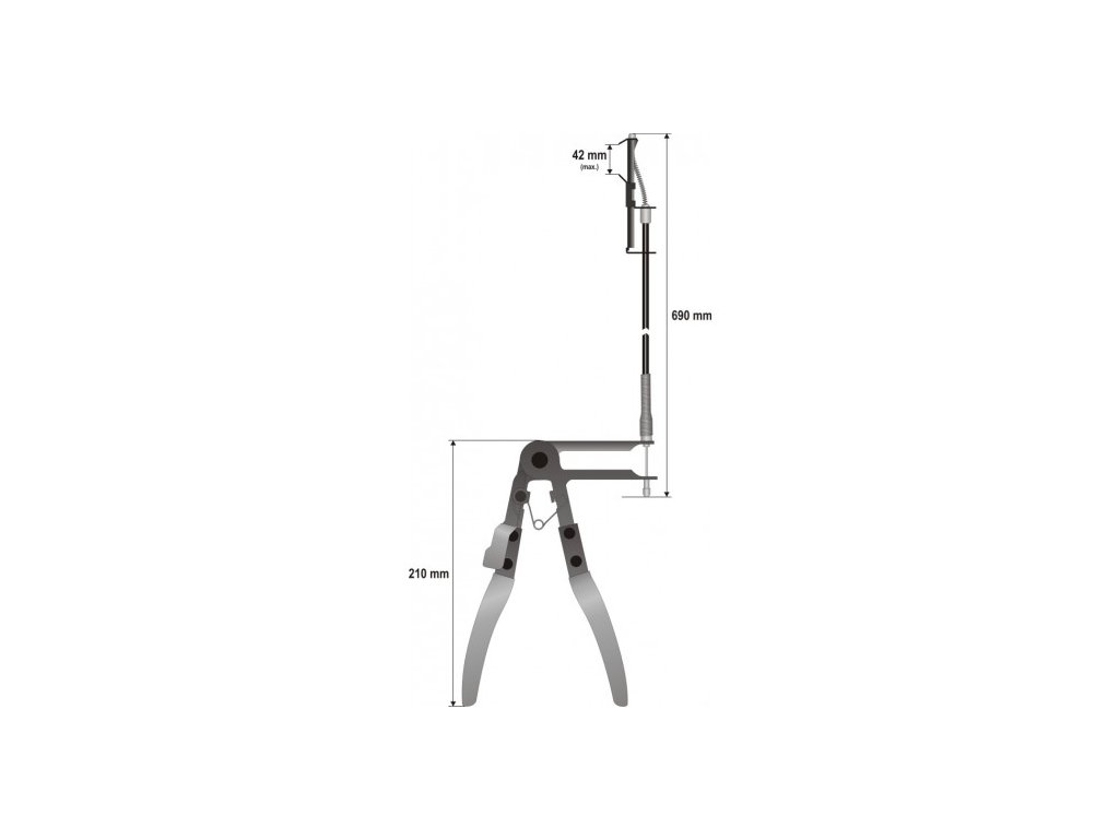 Výrobek je navržený pro manipulaci v těžko přístupných místech. Kleště délky 210 mm, jsou opatřeny bowdenem délky 690 mm a čelistmi s minimálními rozměry, umožňujícími pracovat i ve špatně dostupných prostorech. Rozsah čelistí je 0 - 42 mm.