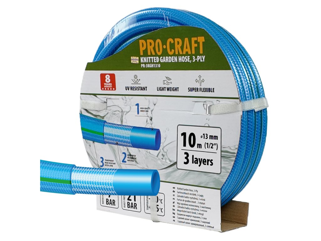 Modrá zahradní hadice Procraft PR-3KGH1310 3 vrstvy, 1/2" 10m