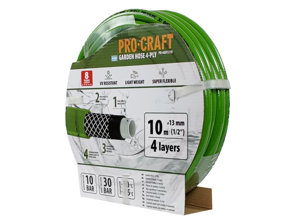 Zelená zahradní hadice Procraft PR-4GH1310 4 vrstvy, 1/2" 10 m | PR-4GH1310