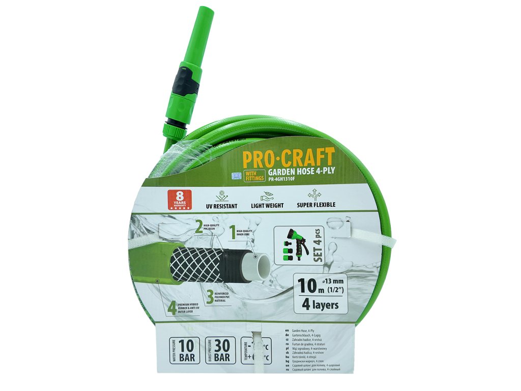 Zahradní hadice Procraft PR-4GH1310F je zkrátka spolehlivým a odolným pomocníkem pro každého zahrádkáře, který ocení dlouhou životnost a bezstarostné používání.