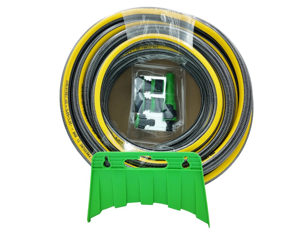 Příslušenství: Sada obsahuje dvě rychlospojky, přípojku, trysku a držak na hadice.