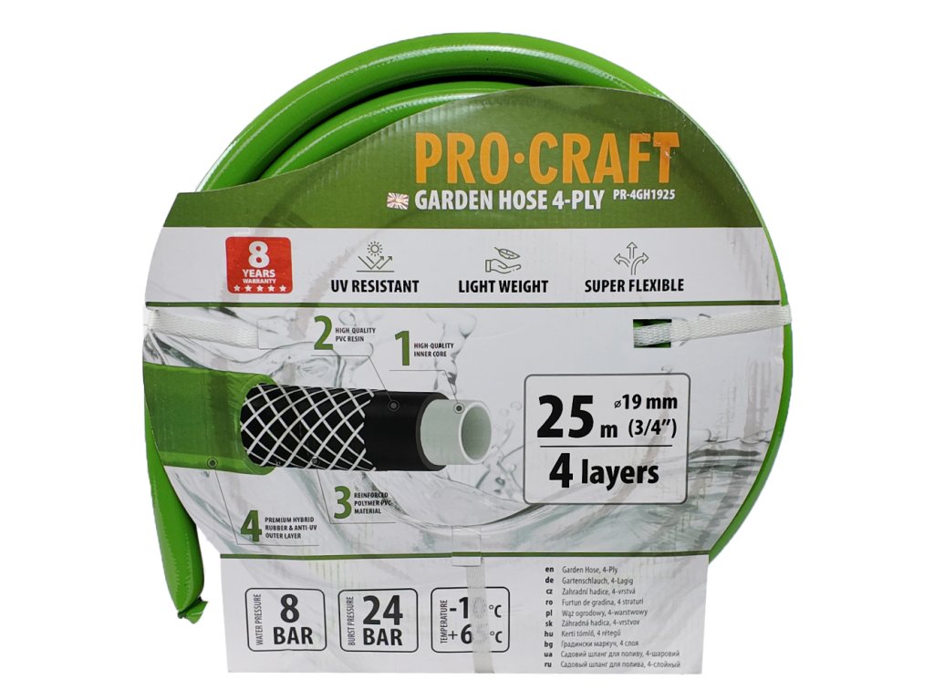 Zelená zahradní hadice Procraft PR-4GH1925 4 vrstvy, 3/4" 25 m | PR-4GH1925