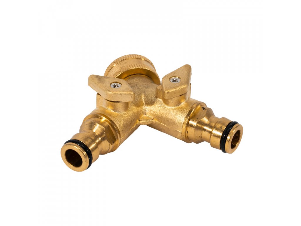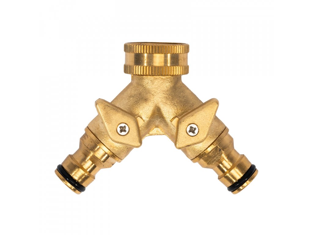 Rozdvojka 3/4" s ventily pro 2 rychlospojky mosaz