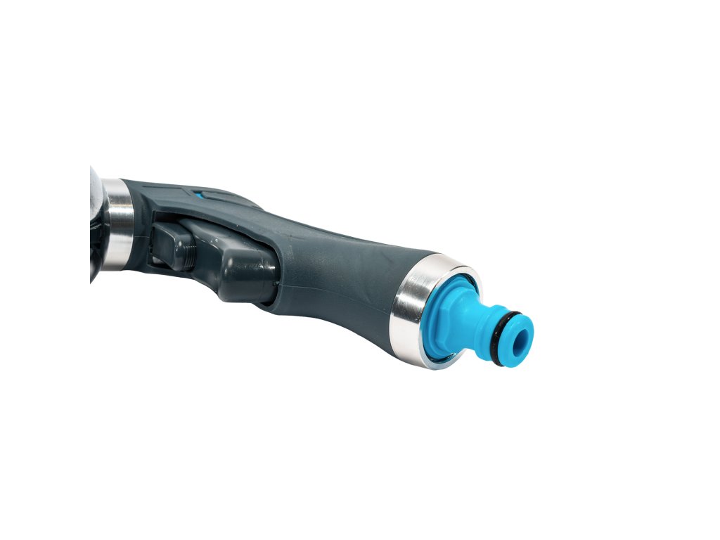 Pistolový postřikovač masivní konstrukce v kombinaci kov-plast. 10 funkcí od jemného zavlažování po silný proud s možností rychlého nastavení. Pro trvalý postřik lze spoušť zajistit.Doplňkové parametry