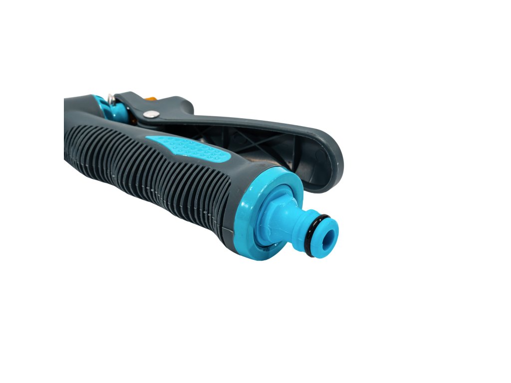 Hadicový postřikovač s pogumovanými prvky proti prokluzu. možnost regulace průtoku vody a aretace spouště.Doplňkové parametry