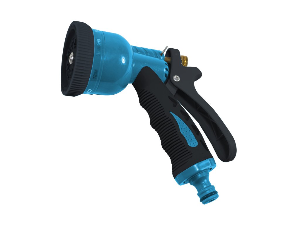 Hadicový postřikovač s pogumovanými prvky proti prokluzu. možnost regulace průtoku vody a aretace spouště.Doplňkové parametry